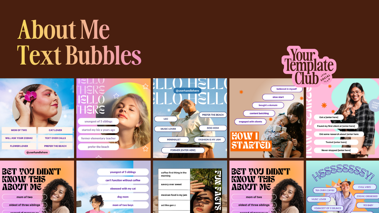 • (1) set of Canva templates which are designed to be used for Instagram. Each set includes a variety of individual ‘pages’ or ‘visuals’ as outlined on the product information page.